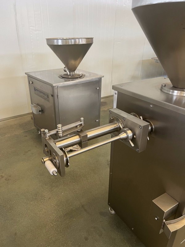 肉乳液装置 (肉詰め装置,ソーセージ詰め器) は,食品加工産業で,粉砕された肉混合物で殻を埋めるために使用されます.この機械は,通常,ソーセージや他の詰め肉製品の様々な種類を生産するために使用されます処理には,準備された肉の混合物を機械に積んで,それをノズルを通って通常天然または合成材料で作られた殻に押し込むことが含まれる.